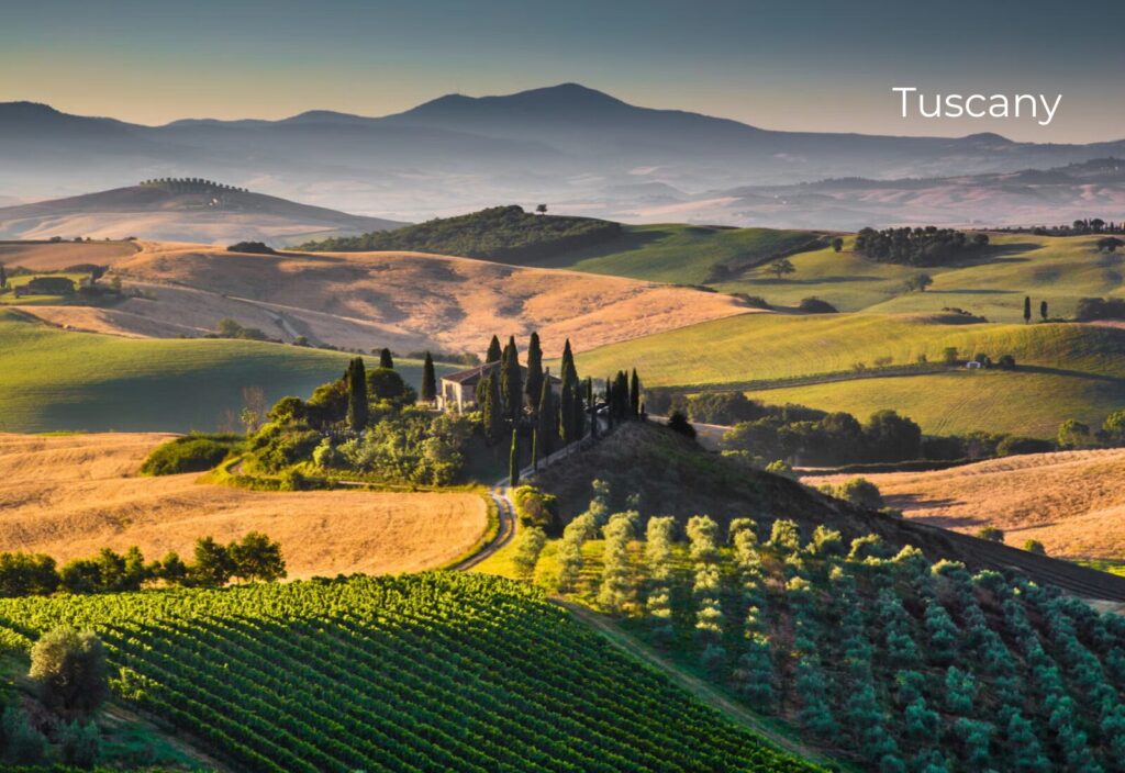 Nestled on the coast of Italy, the region of Tuscany is rich in beautiful scenery, historical architecture, and lush vineyards.